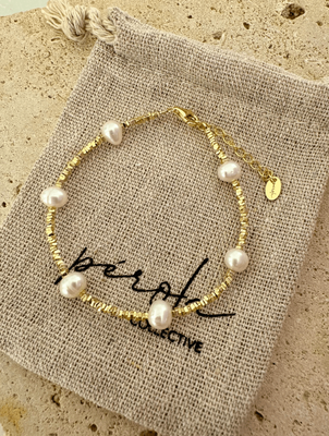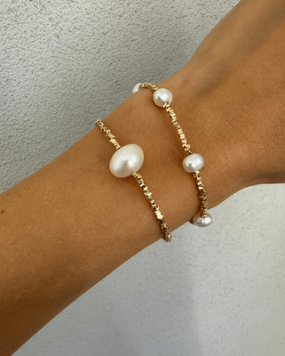 Crushing over our golden Zola bracelet. Crafted from high-quality sterling silver with a lustrous freshwater pearl. Plated with a thick layer of gold vermeil, this bracelet features a unique crushed texture that catches the light in the most captivating way. Each piece is designed to bring out its radiant finish, making it the perfect addition to any jewellery collection. Durable and versatile, it’s the perfect accessory for both everyday wear and special occasions, day or night.