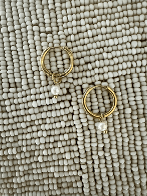 Our lightweight, easy to wear Maya earrings are the perfect fusion of timeless beauty and modern versatility. Featuring pearl look charms, these earrings are designed to be worn in multiple ways. Keep it classic with the golden hoops or add the removable charms for an elegant touch. Whether you're dressing up for an evening out or keeping it minimal for everyday wear, these earrings adapt effortlessly to any look.