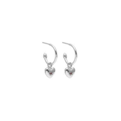 Silk & Steel Petite Puffed Heart Hoop Earrings Ruby Silver