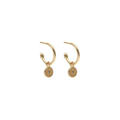 Silk & Steel Petite North Star Hoop Earrings Blue Sapphire Gold Plated