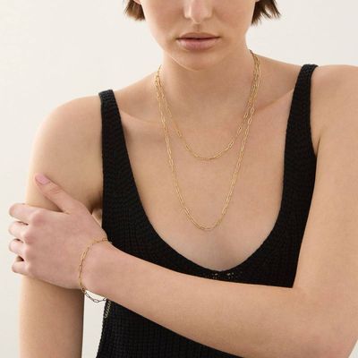 The elemental fluidity of this exquisite chain necklace channels the spirit of Sequana, the mythological River Seine goddess revered for her healing powers and supernatural beauty. Our Italian artisans hammer the rectangular links, creating a wearable tribute to the glittering rhythm of water. Styled solo or layered, the Rivière bathes you in subtle glamour.