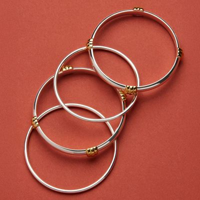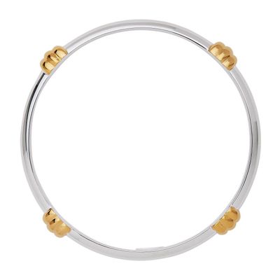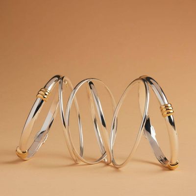 Inspired by Paris’s iconic bridges, this effortlessly glamorous creation is a potent symbol of connection. Her four yellow gold plated ridged ‘bridges’ span the width of the sterling silver half-round bangle, creating an elegant two-tone aesthetic.