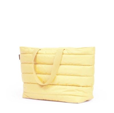 The take it base is your stylish sidekick with its bold, padded fabric and generously sized design. Take it from morning Pilates to an in-office day and a short weekend getaway. The chunky zip closure keeps everything contained while soft cotton shoulder straps deliver carrying comfort. Ultra-lightweight, cloud-like padding adds fun to the functionality of this everyday tote bag.