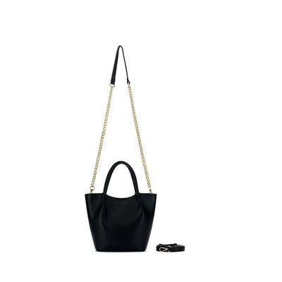 The cute Lara Mini Tote easily converts to a crossbody with the option of a chain or PU strap, ensuring chic sophistication for any occasion.