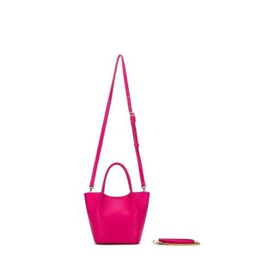 The cute Lara Mini Tote easily converts to a crossbody with the option of a chain or PU strap, ensuring chic sophistication for any occasion.