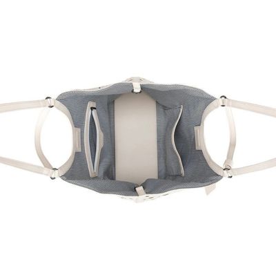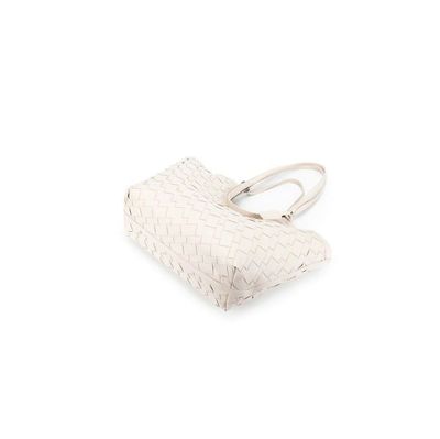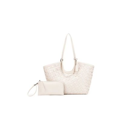 The Solana Tote, crafted in woven vegan leather, is a 2-piece set that blends modern elegance with everyday function. Designed with a connected shoulder strap and a shorter handle, it also features inside clasps that allow you to cinch the bag in for a sleeker silhouette. Complete with a matching pouch -- it's perfect for the airport, workdays, and weekends.