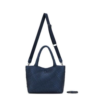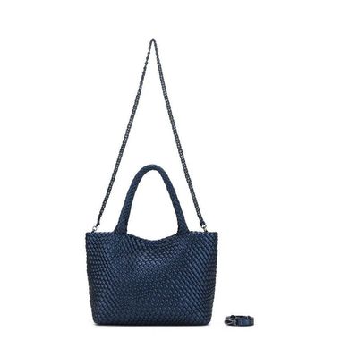 The St Moritz Tote, crafted in woven vegan leather, is the perfect balance of elegance and versatility. This 2-piece set includes a matching pouch and three interchangeable straps -- cotton, PU, and woven chain giving you endless styling options. Spacious and refined, it's designed to move effortlessly from city days to weekend escapes.