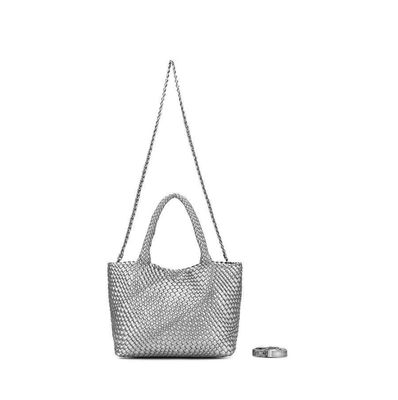 The St Moritz Tote, crafted in woven vegan leather, is the perfect balance of elegance and versatility. This 2-piece set includes a matching pouch and three interchangeable straps -- cotton, PU, and woven chain giving you endless styling options. Spacious and refined, it's designed to move effortlessly from city days to weekend escapes.