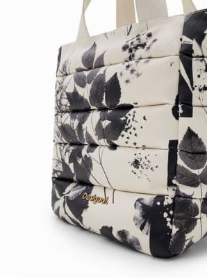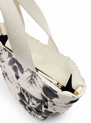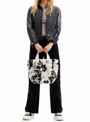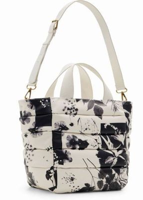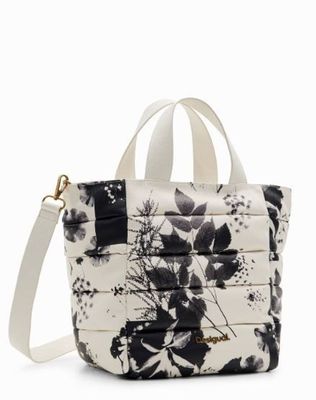 Desigual Black and Cream Floral Print Tote Bag With Crossbody Strap