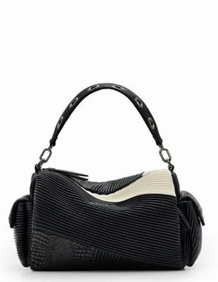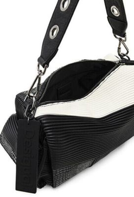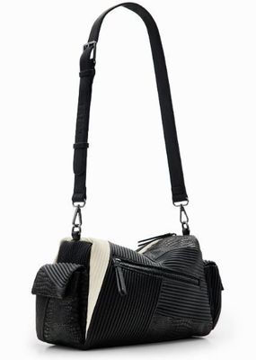 Desigual Black Plisse Textured Crossbody With Mulitple Exterior Pockets & 2 Straps
