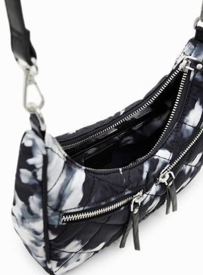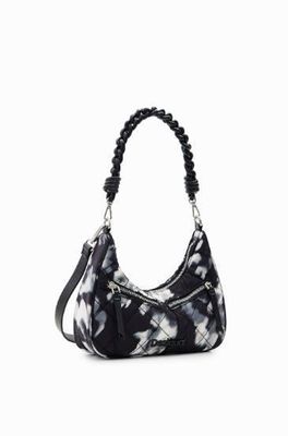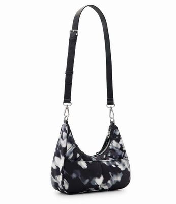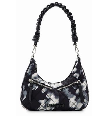 Desigual Black with Grey/White Camo Small Curved Crossbody Bag With 2 Straps