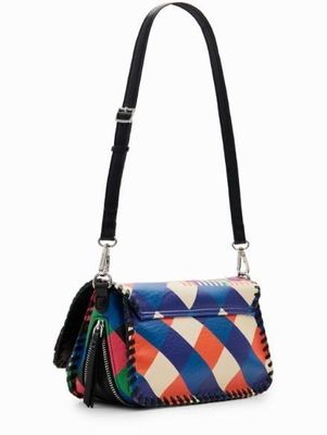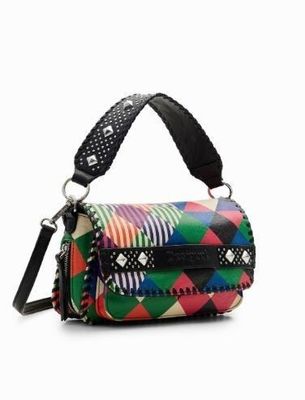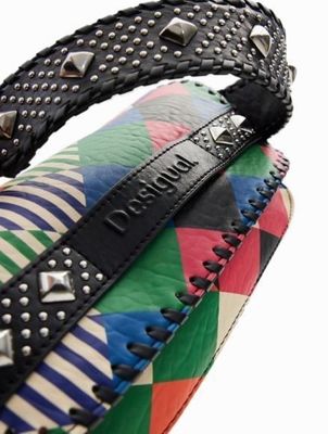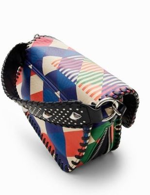 Desigual Geometric Multi Coloured Crossbody With Trim Stitching & Silver Domes
