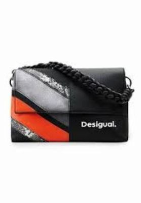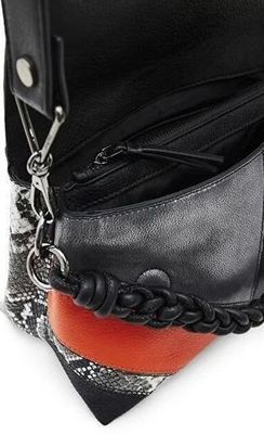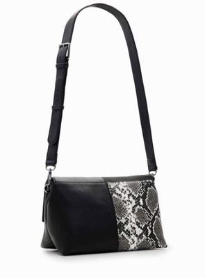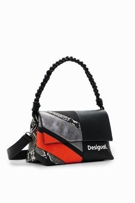 Desigual Half Black, Half Orange/Snake Print Crossbody Bag With Braided Short Handle