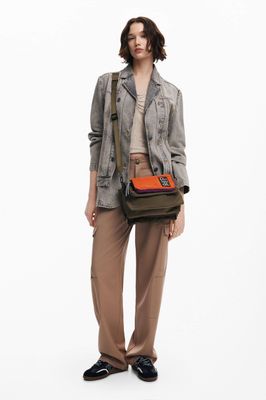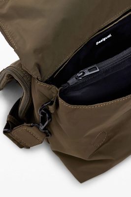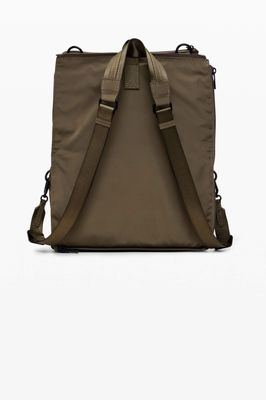 Multiposition nylon backpack with handles, flap closure, and extra zippered pocket