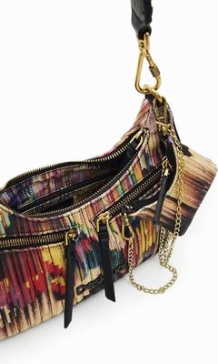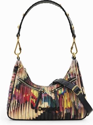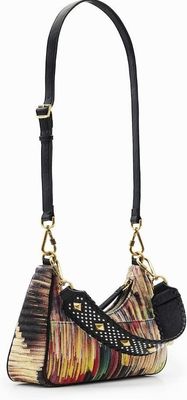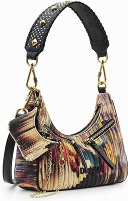 Desigual Multi Coloured Small Curved Crossbody Bag With Studded Strap & Coin Purse