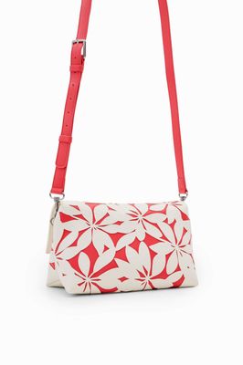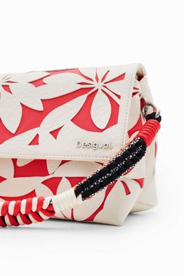 A midsize crossbody bag in leather-effect fabric with a die-cut floral design.
