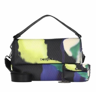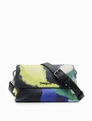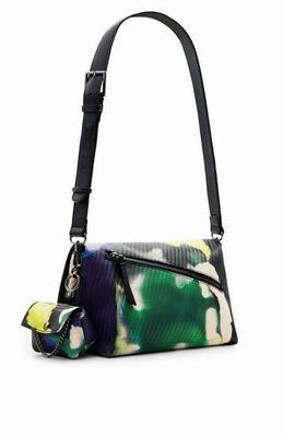 Desigual Small Blue/Yellow/Green Crossbody With Top Flap Over & Mini Bag Charm