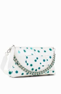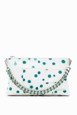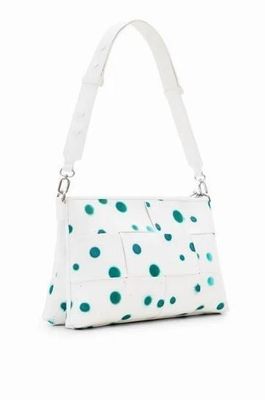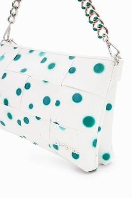 A midsize woven crossbody bag in textured leather-effect fabric with a dropletprint.