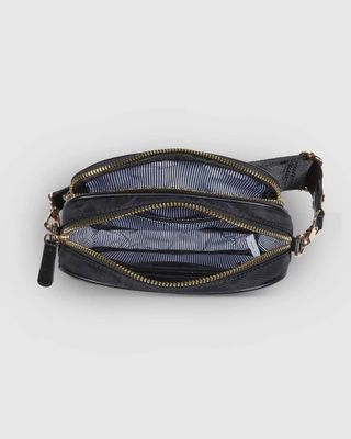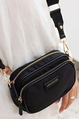 The Louenhide Cali Black Nylon Crossbody Bag is designed for comfort and convenience. The adjustable and detachable sateen guitar strap allows for comfortable wear crossbody or over the shoulder. The bag features one zip pocket and one slip pocket in the main compartment, as well as a front zip pocket for easy access to essentials. The secure zip closure keeps your belongings safe and secure. The light gold hardware adds a touch of elegance to this practical and stylish bag. This beautiful women's bum bag can be dressed up or down and is sure to add a pop of vibrancy to any outfit.