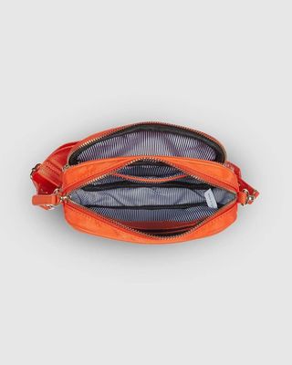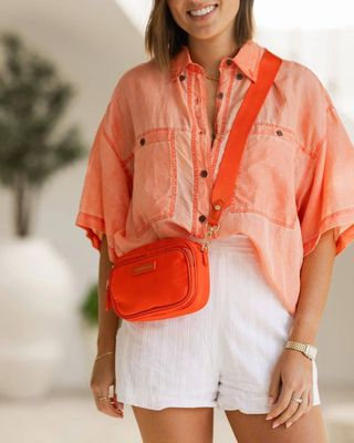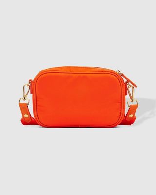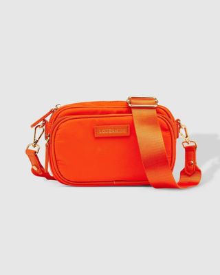 The Louenhide Cali Orange Nylon Crossbody Bag is designed for comfort and convenience. The adjustable and detachable sateen guitar strap allows for comfortable wear crossbody or over the shoulder. The bag features one zip pocket and one slip pocket in the main compartment, as well as a front zip pocket for easy access to essentials. The secure zip closure keeps your belongings safe and secure. The light gold hardware adds a touch of elegance to this practical and stylish bag. This beautiful women's bum bag can be dressed up or down and is sure to add a pop of vibrancy to any outfit.