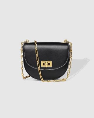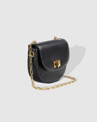 The Louenhide Celeste Mini Crossbody Bag is the perfect date night accessory. This signature style features a much-loved saddle-bag silhouette with contrast white stitching and gold chain strap detailing, to elevate even the simplest event outfit. Offering enough room to hold your essentials, keep your valuables organised in the internal zip pocket while keeping your larger items secure with the turn lock closure. Ready for the season to change, style this black evening bag with a lightweight trench thrown over a knit dress. Celeste is the classic, little black crossbody bag that every girl needs.