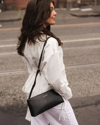The Louenhide Lara Croc Black Handbag is your new go-to little black bag (LBB). It's sleek and slim profile effortlessly elevates any wardrobe, while being perfectly sized to hold your going-out essentials - lip gloss, keys, cards and phone - this bag is as practical as it is refined.