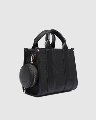The Louenhide Mini Manhattan Black Tote Bag is your favourite silhouette reimagined. Say hello to the sleekest mini handbag in town - your new go-to for effortless style and endless compliments! This women's mini tote bag is small in size, but big on style. Hanging by your side, it's all about making a statement with the boxy silhouette and sleek design, she's the accessory for those who love to keep things stylishly simple. She may be small enough to be cute but spacious enough to hold your everyday must-haves. Plus, the stylish top handles make her a dream to carry.