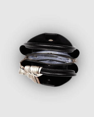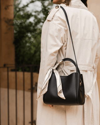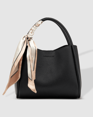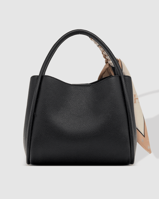 The Steffie Black Mini Tote Bag is a chic, compact style that brings elegance to everyday dressing. Small in size yet deceptively spacious, she features three internal compartments - including one with a secure zip closure - to keep your essentials neatly organised. A magnetic closure offers quick and easy access while maintaining her streamlined silhouette. Carry Steffie by the top handles for a polished, going-out look, or attach the detachable crossbody strap for an effortless, hands-free style. Finished with a braided silk-feel scarf draped over the handle, she adds a refined touch to any outfit, making her a versatile staple you'll reach for season after season.