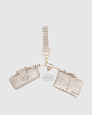 The Ziggy Champagne Accessory Bundle is the ultimate compact essentials kit for handbags, thoughtfully designed to keep your daily routine effortlessly organised. This curated set combines four functional accessories into one stylish bundle - secured with a Caribou clip to keep everything neatly in place. Inside, you'll find the Skittle Sunglass Case, crafted from soft vegan leather with a plush suede lining and finished with a keyring clasp to attach easily to your bag or keys. The Lenny Purse is travel friendly with RFID blocking and features a slim, compact silhouette that's perfect for storing coins, cards, or small essentials. The bundle also includes a sleek Iris Wristlet for hands-free ease, and a plastic phone converter clip to keep your tech adaptable on the go. Whether you're running errands, heading to brunch, or packing light for a weekend getaway, the Ziggy Champagne Accessory Bundle offers everything you need in one travel-friendly kit.