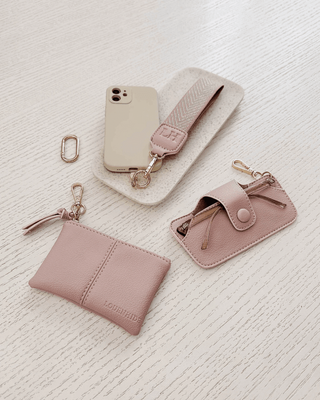 The Ziggy Pink Accessory Bundle is the ultimate compact essentials kit for handbags, thoughtfully designed to keep your daily routine effortlessly organised. This curated set combines four functional accessories into one stylish bundle - secured with a Caribou clip to keep everything neatly in place. Inside, you'll find the Skittle Sunglass Case, crafted from soft vegan leather with a plush suede lining and finished with a keyring clasp to attach easily to your bag or keys. The Lenny Purse is travel friendly with RFID blocking and features a slim, compact silhouette that's perfect for storing coins, cards, or small essentials. The bundle also includes a sleek Iris Wristlet for hands-free ease, and a plastic phone converter clip to keep your tech adaptable on the go. Whether you're running errands, heading to brunch, or packing light for a weekend getaway, the Ziggy Pink Accessory Bundle offers everything you need in one travel-friendly kit.