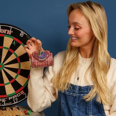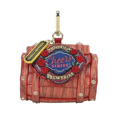 Here's a purse with personality! The Cheers Street Barrel Coin Purse is shaped like--you guessed it--a barrel. It's a compact yet spacious vegan leather accessory that can hold cards and cash, secured with a zip closure. Clip it onto your Cheers Street bag with the attached clasp for added flair. Finished with rich embossed details, red roses, and the Cheers Street logo, this purse is a novelty you'll never get tired of using.