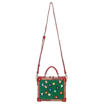 Feeling playful? Then the Cheers Street Billiard Box Bag is your perfect match! This vegan leather novelty piece can hold everything you need for the day--or for pub quiz night--and features an exclusive Boutique range lining. It includes both a top handle and a detachable, adjustable strap, allowing you to wear it crossbody or over the shoulder. The standout feature? A double-sided design: one side showcases a billiard game, while the other shows a game of backgammon. With embroidered cues, lifelike billiard balls, and a vivid backgammon board, this bag is a conversation starter. We think it's a winner. And now, so are you.