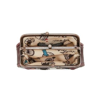 Wave a little magic into your wardrobe with the Mystic Wicks Candle and Wandmakers Clipper Coin Purse. With two clasp-secured compartments, it keeps your valuables tidy and safe. The copper hardware and charming mystical artwork make it an enchanting addition to your collection. Match it with any bag from the range—or carry it solo for a dose of everyday magic.