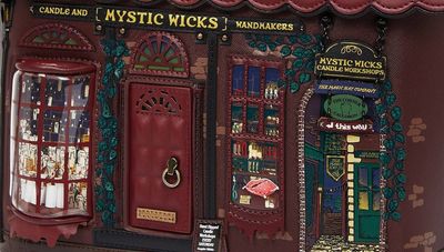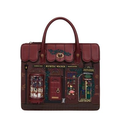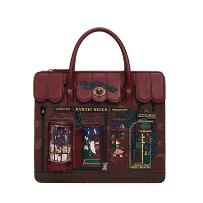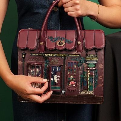 Bring light to your day with the enchanting Mystic Wicks Candle and Wandmakers Harriet Backpack! This clever multiway bag can be worn as a backpack, handbag, or shoulder bag thanks to its dual handles and detachable straps. It's roomy, practical, and positively magical with its detailed printed and appliqué artwork--including a never-before-seen alleyway leading to even more wonders. We suspect a magical hat shop may be waiting just around the corner...