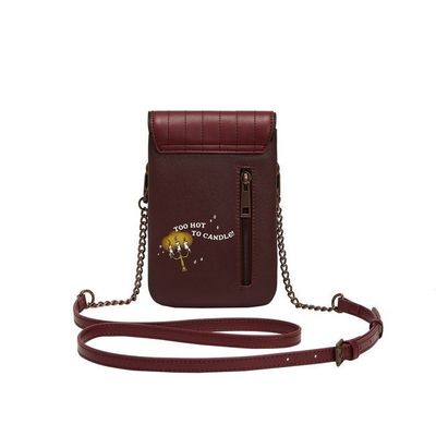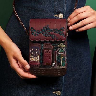 Say goodbye to autumn blues with the Mystic Wicks Candle and Wandmakers Phone Pouch Bag! This pocket-sized powerhouse features three compartments, a secure flap and zip closing, and a back zipped pocket for cards and cash. The burgundy vegan leather, copper hardware, and spellbinding artwork will have heads turning wherever you go. Your friends may think it's a trick of the eye, but it's just Vendula working its magic again.