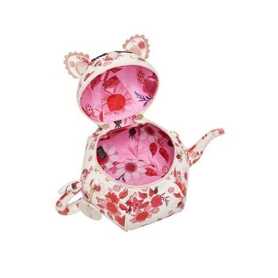 Sometimes, all you need is a good cup of tea - and a fabulous teapot-shaped bag! The Perfectly Pink Afternoon Tea Bus Kitty Teapot Bag is a quirky vegan leather accessory with space for all your essentials. Wear it crossbody or over the shoulder and set it down confidently on any surface, thanks to its flat base. Featuring an adorable cat's head, a tail-shaped handle, and hand-stitched floral details, this bag is a show-stopper. The floral print and cute zip pullers will turn heads and start conversations - and give you the perfect chance to share the mission of the Pink Ribbon Foundation. It's not just adorable; it's meaningful too.