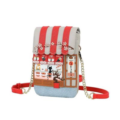 It's impossible not to enjoy taking out the Vendula Sushi - Grey Edition Phone Pouch this spring and summer! This vegan leather accessory is highly practical, with a front pocket for your phone, two zipped pockets for other essentials, and a back zipped pocket for cash and cards. The detachable and adjustable strap ensures it can be carried as you prefer. This bag will add a hint of East-Asian flair to your wardrobe with its delightful sushi restaurant shopfront design and year-round suitability. Isn't that fantastic news?