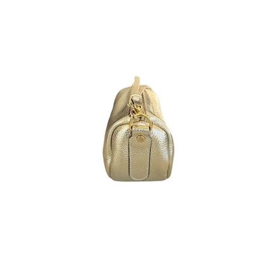 A fanciful and luminous micro bag in metallic leather dedicated to both a young audience and a dynamic woman who loves a glamorous and fashionable look. Perfect to illuminate special moments.