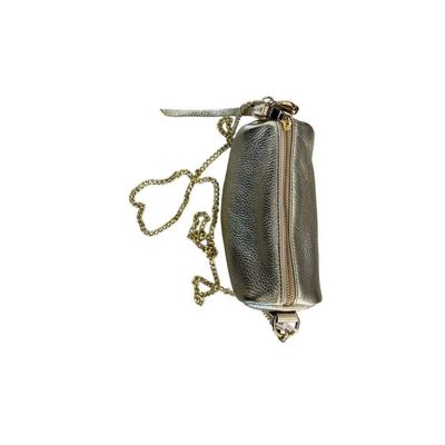 ACCESSORIES Nickel-free galvanic light gold colour. Removable shoulder strap in metal chain. Tone-on-tone front embossed logo.