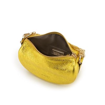 A fanciful and luminous micro bag in metallic leather dedicated to both a young audience and a dynamic woman who loves a glamorous and fashionable look. Perfect to illuminate special moments.
