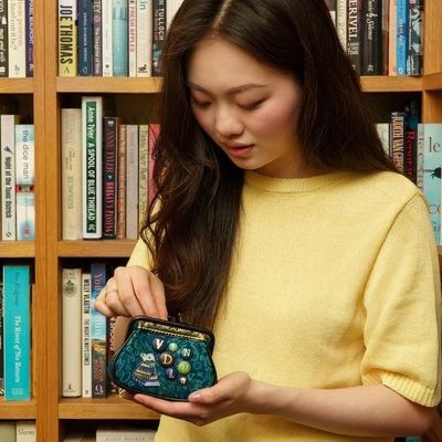 Don't let its size fool you--the Between the Covers Bookbinders Clipper Coin Purse is packed with character! Made from vegan leather, it features two separate compartments to store your coins, cards, or receipts, all secured with a traditional clasp closure. The printed and embossed artwork is as intricate as a classic novel, with gold foil highlights and vibrant bookstore-inspired details. Slip it into your bag or pair it with a Mini Grace or Kate Bag for an effortlessly coordinated look. It's vintage charm with a modern twist!