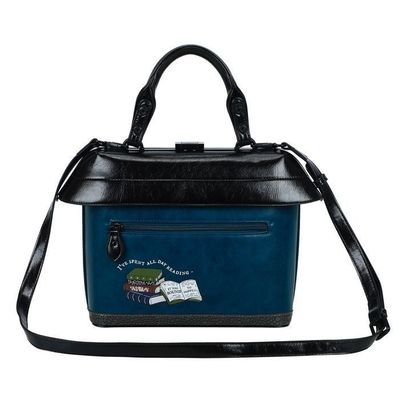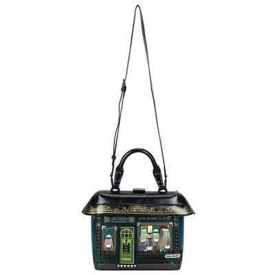 At Vendula, we never run out of inspiration--and the Between the Covers Bookbinders Grab Bag is a testament to that. This collectible handbag, with its sleek matte black hardware, is ideal for any occasion. It boasts a roomy compartment and multiple pockets to keep your essentials organized. Whether worn as a handbag, shoulder, or crossbody bag, it adds a refined touch to any autumn/winter outfit. Adorned with printed and appliqué details, gold foil accents on the roof, and intricate embroidery, this inviting bookshop facade is guaranteed to turn heads. Shall we pop in for a quick browse?