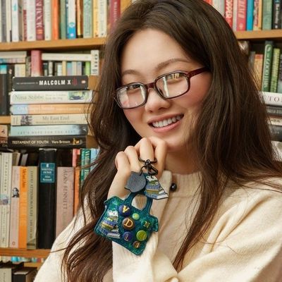 Chapter one: style. The Between the Covers Bookbinders Key Charm is the perfect miniature replica of your new favourite bag! Shaped like a handbag and made from vegan leather, it features a clasp and keyring, so you can attach it to your keys or bag. With exquisite printed and 3D details, including miniature books, ivy, signage, and gold accents, this charm is a delightful little extra for any Vendula fan. Because every story deserves a good prologue.