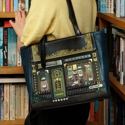 "So many books, so little time"--but never for a true Vendulette! The Between the Covers Bookbinders Shopper Bag is perfect for carrying your favourite hardback, a tablet, notepad, and all your daily essentials. Its large adjustable handles sit comfortably on your shoulder, and base studs keep the bag upright and clean. The beautifully detailed artwork includes ivy embroidery, a moulded street sign, and a colourful display of books--just a few of the features that make this bag your soon-to-be favourite. To be continued...
