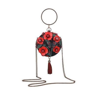 Want to make your next day--or night--out truly unforgettable? Then say hello to the Butterfly Garden Jayla Evening Bag. This compact masterpiece, secured with a vintage-style clasp closure, is just the right size for all your evening essentials. Carry it by the dazzling handle or wear it crossbody using the optional strap when it's time to hit the dancefloor. Made from vegan leather, this striking accessory steals the spotlight with 3D poppies, fluttering butterflies, and playful red tassels. Add in a gorgeous floral lining and you've got yourself the perfect party piece. A fresh favourite in the reimagined Poppy range, this bag will have everyone talking--so don't wait too long to get your hands on one!
