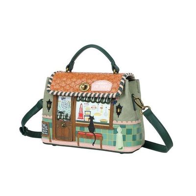 Sometimes, all you need is a little pie and the Vendula Pie Shop Mini Grace to make your day. This compact version of the Grace Bag still has plenty of room for your daily essentials. With a top handle and detachable strap, it can be carried as a handbag or worn crossbody. Crafted from vegan leather, it's decorated with detailed prints and appliqué accents including a whipstitched lattice flap, an opening door, and delightful pie shop motifs. Your friends will be green with envy when they see this bag--especially if you top it off with a matching purse or wallet!