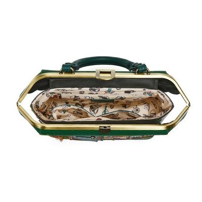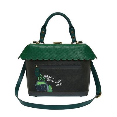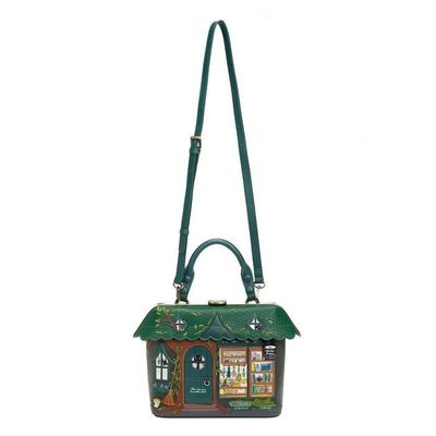 Grab your pitchforks--the witch hunt is back! The Witches Pantry Grab Bag introduces a new shape to the range, designed to carry all your daily essentials in spellbinding style. It features a detachable handle and strap, giving you the flexibility to wear it your way. Base studs keep it stable on any surface--but if it starts to levitate, you might want to run! Shaped like a witch's house, this vegan leather shopfront handbag boasts a magical design, with leafy roof windows, a charming pantry scene, and a mysterious door you may have opened once before. Dare to open it again?