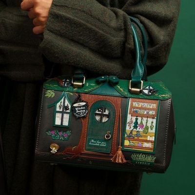 From the depths of the cauldron comes the Witches Pantry Speedy Bowler Bag, packed with bewitching charm! This everyday bag is spacious and features sturdy handles, plus a detachable, adjustable strap for shoulder or crossbody wear. Crafted from vegan leather, it's adorned with enchanting printed and appliqué details: a bubbling cauldron, creepy-crawlies, herbs, potions, and of course, the essential broomstick. This spellbinding shopfront bag will charm anyone who lays eyes on it--don't say we didn't warn you!