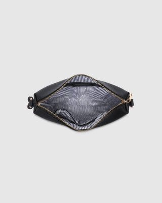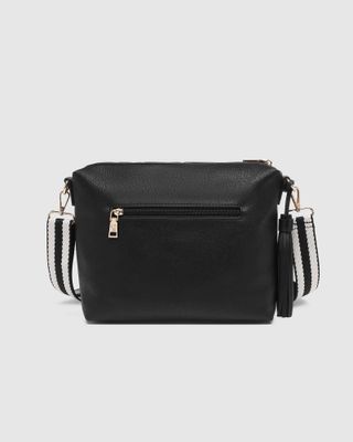 The Daisy Black Stripe Crossbody Bag is a best-selling favourite, loved for her buttery soft, slouchy silhouette and effortless versatility. Designed with both style and function in mind, she features two slip pockets, one internal zip pocket, and a back zip pocket to keep essentials secure and organised. Finished with light gold hardware and a playful tassel, Daisy includes two strap options - a sporty, adjustable webbing strap for a relaxed edge, or a matching vegan leather strap for a polished finish. Whether worn casually or styled with sophistication, Daisy adapts effortlessly to your mood and your moment.