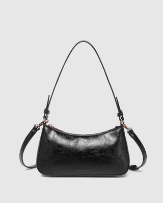 The Jacqueline Shoulder Bag is where function meets finesse. A classic shoulder bag crafted from lustrous black crinkle patent vegan leather, she embodies modern polish in a sleek, structured silhouette. Designed with versatility in mind, Jacqueline features two interchangeable straps, transforming effortlessly from shoulder bag to crossbody, one of the most refined crossbody bags for women. Compact yet considered, she slips neatly into your workday tote, ready to take you from desk to dinner with quiet sophistication. Finished with a secure zip closure and softly structured form, she transitions seamlessly from office hours to off-duty moments. Timeless in form and modern in attitude, she’s the perfect blend of polish and practicality.